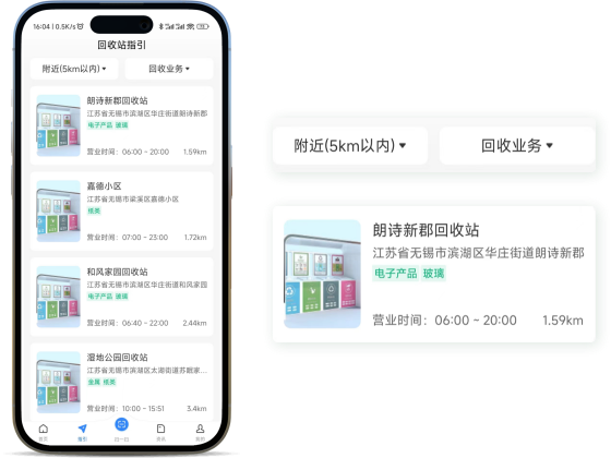 指引中可以快速查询回收站、回收类品、回收价等信息。咨询包括小黄鹂环保知识、环保动态、生活妙招等咨询入口